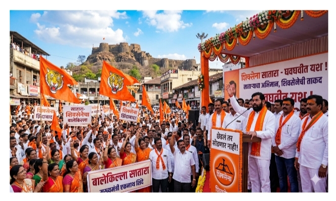 राजवाड्याच्या ऐतिहासिक मैदानावर घुमणार शिवसेनेचा आवाज; साताऱ्यात भगवे वादळ धडकणार!" ; पक्षप्रवेशावर आधारित: "कोरेगावसह जिल्ह्यात विरोधकांना मोठे खिंडार; दिग्गज नेत्यांसह कार्यकर्त्यांचा शिवसेनेत 'जय महाराष्ट्र'!"