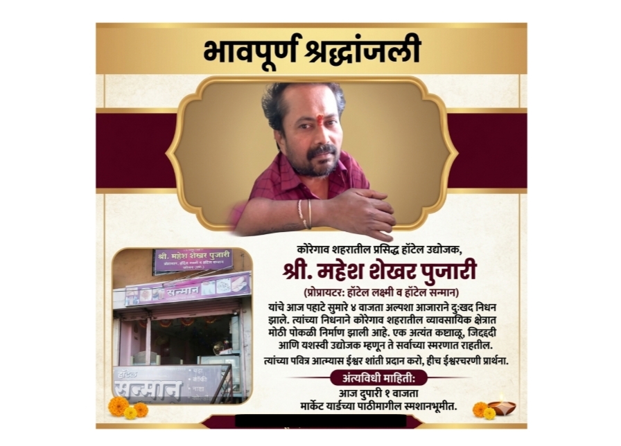 कोरेगावच्या खाद्यसंस्कृतीचा 'आधारस्तंभ' हरपला अल्पशा आजाराने काळाचा घाला; पुजारी कुटुंबावर दुःखाचा डोंगर