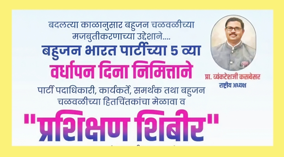 राष्ट्रीय अध्यक्ष प्रा. व्यंकटेश कसबे यांचे होणार मुख्य मार्गदर्शन बहुजन चळवळीला बळकटी देण्यासाठी कार्यकर्त्यांचे होणार प्रशिक्षण भालचंद्र ब्लड बँक येथे रविवारी सकाळी ११ वाजता आयोजनाची जय्यत तयारी