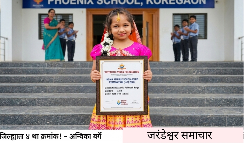 कोरेगावच्या कन्येची मोठी झेप; जिल्ह्यात वाजवला यशाचा डंका! चिमुकल्या अन्विकाचे 'हाय व्होल्टेज' यश; गुणवत्तेच्या शिखरावर कोरेगावचे नाव! दुसरीच्या विद्यार्थिनीची गरुडझेप; सातारा जिल्ह्याच्या यादीत मानाचे स्थान!