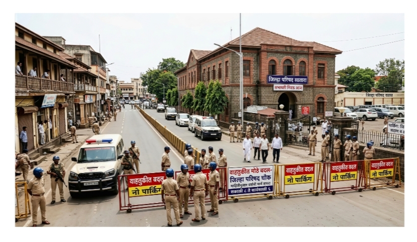प्रशासनाचे 'कवच-कुंडल'; ४ एप्रिलला जिल्हा परिषद परिसरात 'नो एन्ट्री' सभापती निवडीचा थरार: राजकीय घडामोडींच्या पार्श्वभूमीवर साताऱ्यात तणावपूर्ण शांतता मतदान केंद्राला छावणीचे स्वरूप; केवळ सदस्यांनाच प्रवेशाची मुभा जिल्हाधिकाऱ्यांचा 'ॲक्शन प्लॅन': नियम