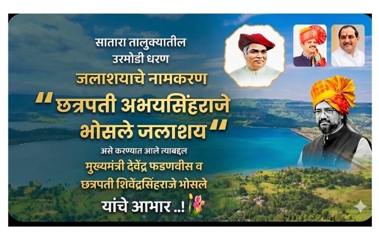 राजघराण्याच्या कार्याचा सन्मान; उरमोडी जलाशयाचे नामकरण पूर्ण!मुख्यमंत्री फडणवीस यांचा दूरदृष्टीचा निर्णय; शिवेंद्रसिंहराजेंचा पाठपुरावा यशस्वी.